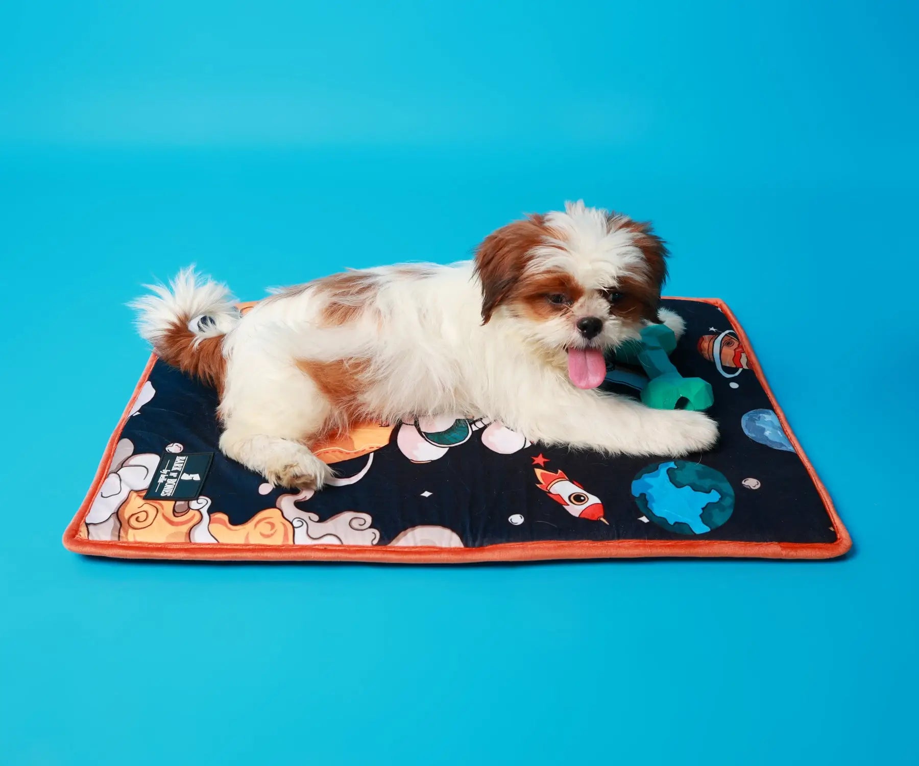 Cosy, comfortable and easy to maintain, the Doggonaut in Space Blackey Pet Mat is ideal for a nap. Easy to maintain, it can be spread out on the seat of your car, the bed or even the sofa. It can be rolled up and carried around easily.
